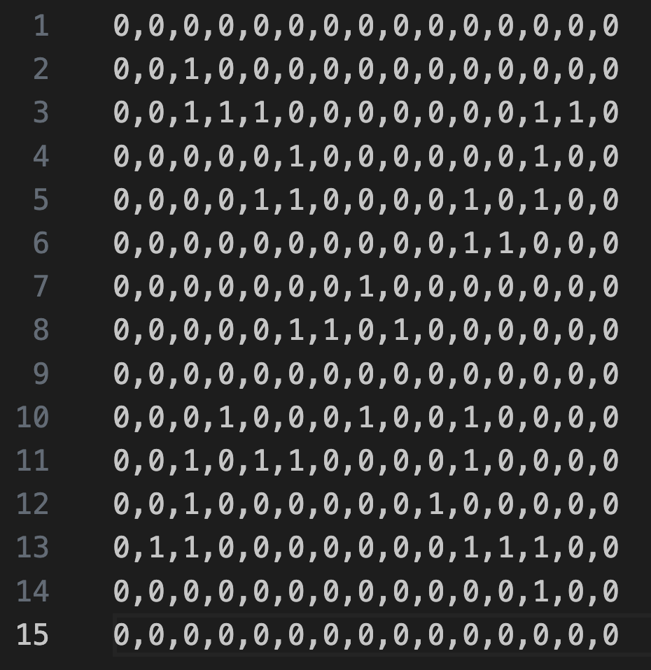 , we will first read a board from file. Let’s read the simplest board, the R pentomino, which is stored in boards/rPentomino.csv