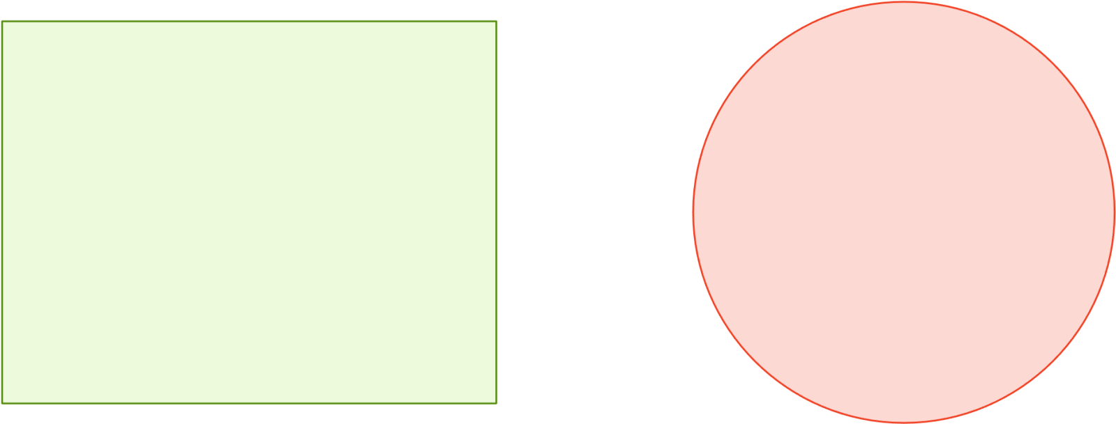To help us transition toward object-oriented programming, we will imagine that we are producing an early version of an application for making slide decks like PowerPoint, and we want to find a simple abstract representation of different shapes such as rectangles or circles (shown below).