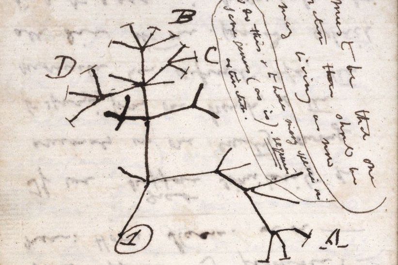 Figure: The first known evolutionary tree, drawn by Charles Darwin in his notebook in 1837.