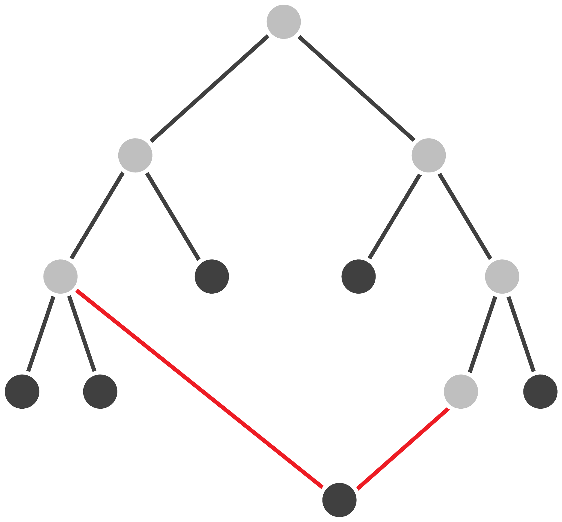 First, if a tree were not connected, then we would obtain a network like that shown in the figure below, which can be divided out into “connected components”. Such a network is not biologically meaningful because it would imply that the organisms represented within the tree do not share a common ancestor. It may somehow be the case that there are groups of living things on Earth that do not share a common ancestor (moss piglets or the Finns could have extraterrestrial origins), but all of evolutionary biology stands upon the unprovable yet compelling dogma that life on Earth derives from a single organism, called the last universal common ancestor.