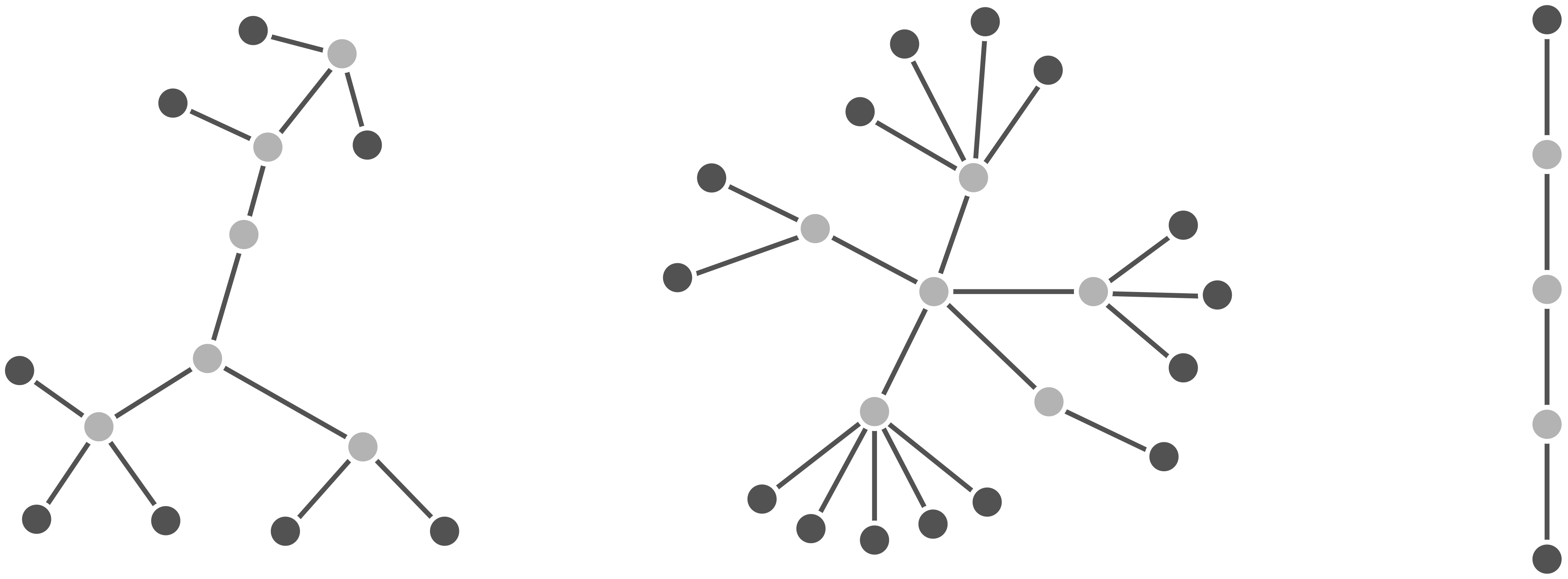 You may have noticed that we colored some of the nodes in the trees above using darker gray. As Darwin indicated in this chapter’s epigraph, present-day species correspond to the outer “twigs” of the tree, whereas ancestral species are confined to interior nodes.